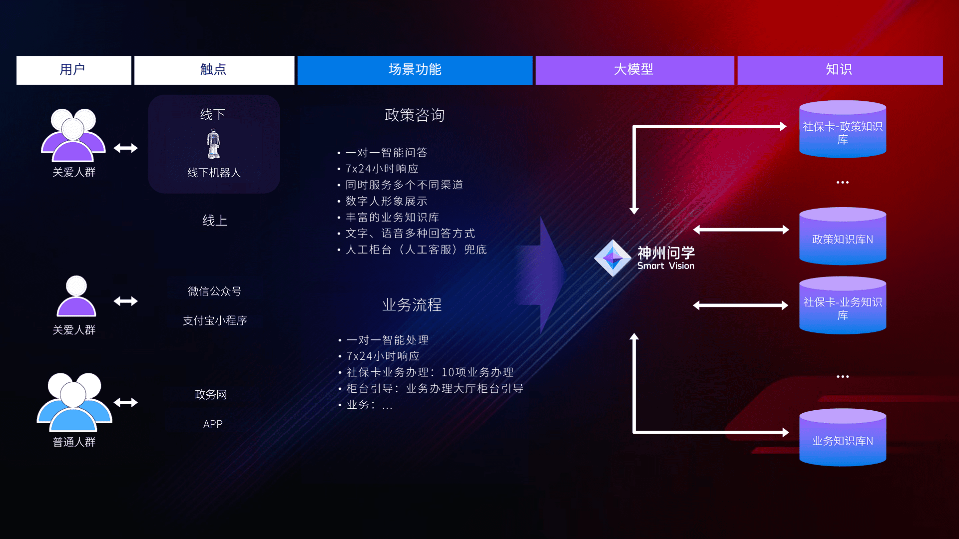 • 线上线下全覆盖:线上提供微信公众号、、支付宝小程序、、政务网、、app多种渠道,,,,与线下机器人形成完整服务体系。。